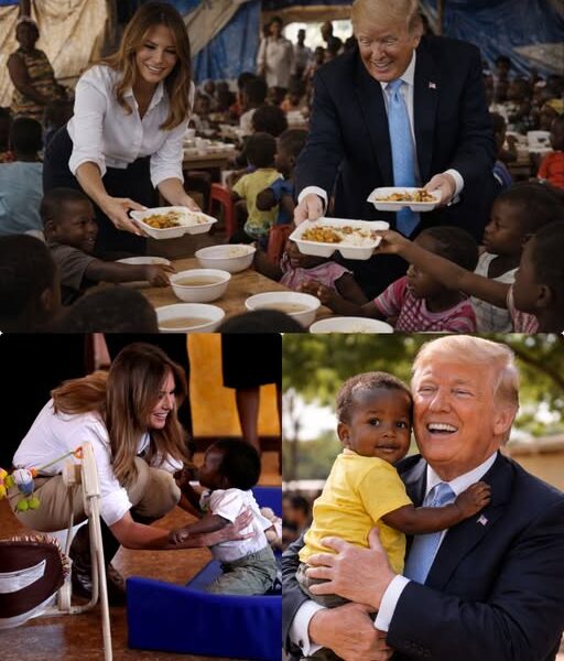 Donald Trump rolled up his sleeves and helped carry trays, learning the routine as he went. Melania Trump assisted in arranging plates, making sure each child was served before sitting down herself. Together, they helped prepare and distribute